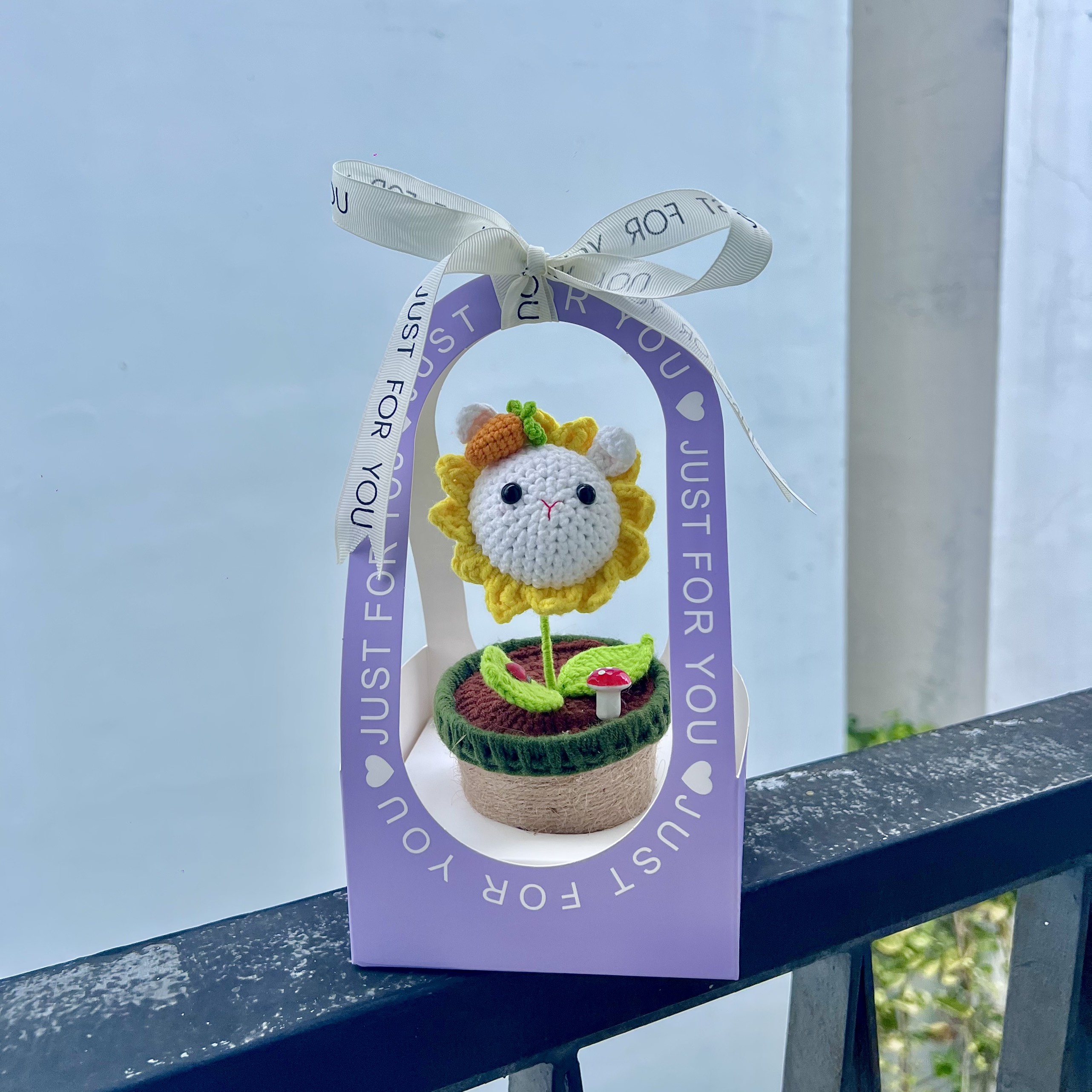 - Chậu hoa hướng dương được làm tại Việt Nam, thể hiện sự tự hào về nghệ thuật đan móc handmade và nghệ nhân làm thủ công tại đất nước.
