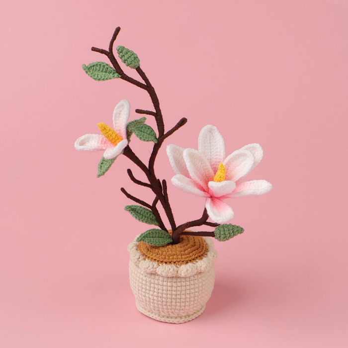 (Túi+Thiệp) Chậu Hoa Đế Len - Mộc lan - Trắng